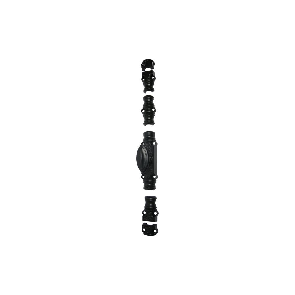 En fonte. Pour tringle ½ ronde 16 x 8 mm. Composition du kit : - 1 boitier RY59, - 1 coulant, - 2 chapiteaux, - 2 gâches. Dimensions boitier : 147 x 42 x 16 mmFinition:Gris