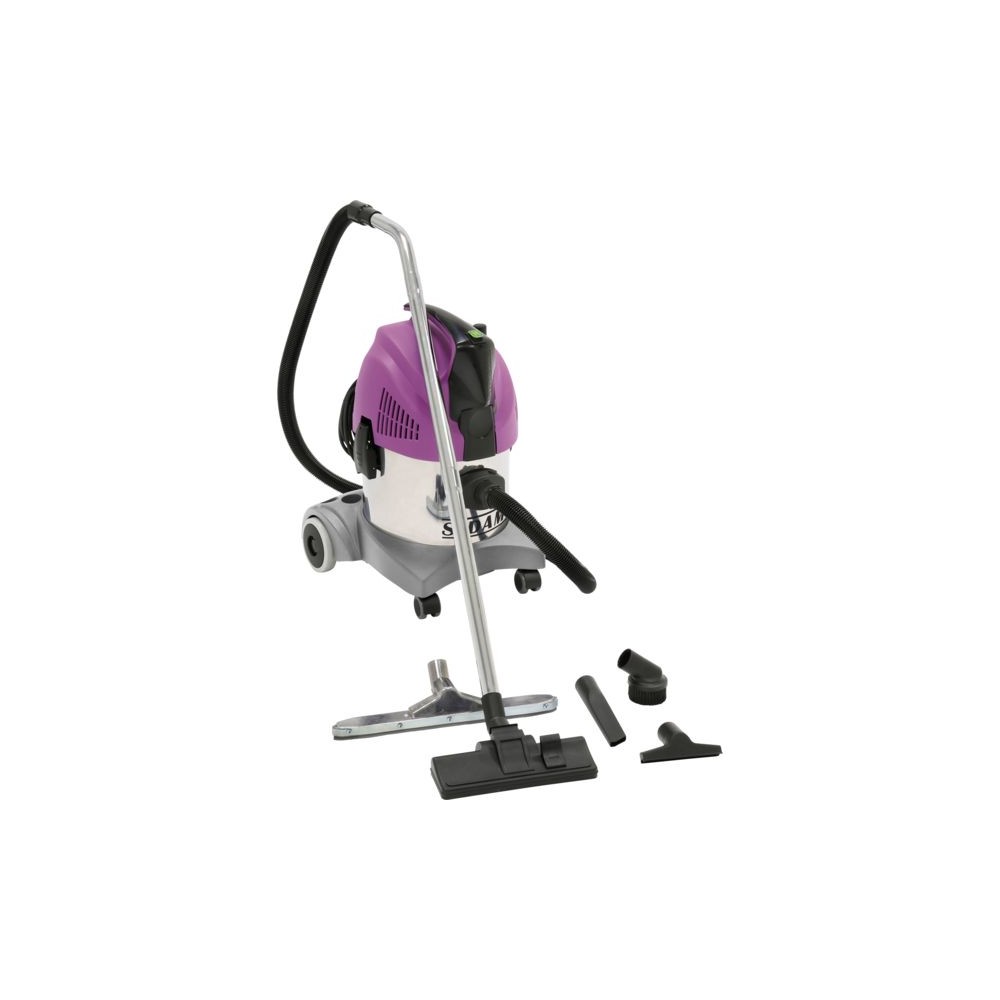 Système de décolmatage manuel du filtre par simple bouton. Filtre cartouche Classe M en PET résistant à lêu. Base renforcée. Rangement accessoires intégrés dans la base (suceur à liquide et mixte). Flexible armé anti-écrasement. Aspiration biturbine conçu pour des utilisations intensives continues. Plaque anti électricité statique reliée à la prise de terre. Câble d'alimentation en néoprène longueur 7 m. Alimentation : 230 V Puissance : 1450 W Débit d'air : 70 l/s Dépression : 267 mbar Capacité de cuve : 20 l Poids : 10 kg Dimensions : 43 x 60 x 46 cm Livré avec 2 tubes coudés, flexible 2,2 m, 2 suceurs, 1 brosse.Désignation : Aspirateur
