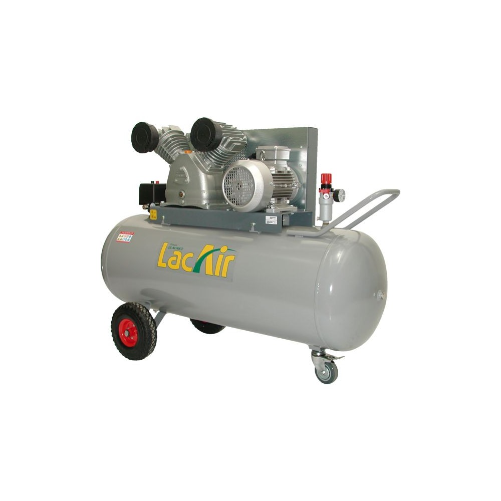Groupe fonte bicylindre en V, monoétagé, gros débit. Sortie directe raccord rapide. Epurateur-détendeur grand modèle 2 sorties raccords rapides. Contacteur disjoncteur: protection thermique. Grosses roues + roue directrice avant avec frein. Alimentation : 400 V triphasée Puissance : 5,5 cv Réservoir : 200 l Débit aspiré : 36 m³/h Débit restitué : 27,7 m³/h Pression maxi. : 10 bar Temps de charge à 10 bar : 3 mn 50 s Vitesse moteur : 960 tr/mn Poids : 131 kg Dimensions : 140 x 45 x 92 cm