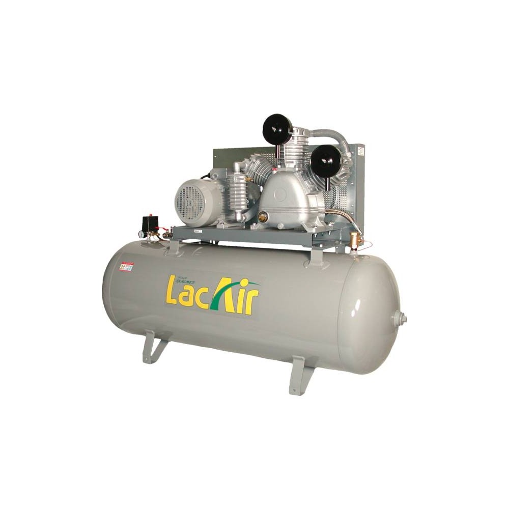 "Groupe fonte tricylindre en W, biétagé, gros débit.Entraînement par courroie. Robinet de sortie directe gros débit 3/4""F. Compteur horaire, boitier de commande avec protection thermique. Démarrage direct. Alimentation : 400 V triphasée Puissance : 13 cv Réservoir : 500 l Débit réel : 70 m³/h Pression maxi. : 12 bar Temps de charge à 10 bar : 3 mn 50 s Vitesse de rotation : 1015 tr/mn Poids : 355 kg Dimensions : 195 x 64 x 141 cm"