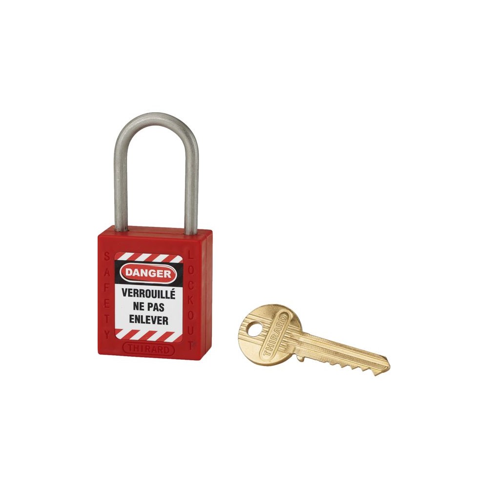 Corps ABS non conducteur avec anse en acier inoxydable. Double ancrage. Fonction clé prisonnière. Corps (L x H) : 38 x 44 mm Livré avec 1 clé.Coloris : Jaune | Larg. haut Ø anse : 20 x 76 x 6 mm