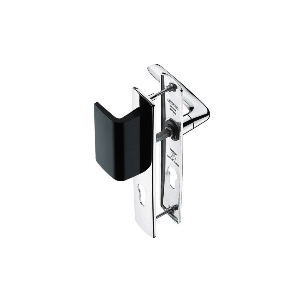 Monobloc en zamak, plaque et béquille solidarisées. Plaque avec piliers taraudés. Clé I. Plaque : 215 x 41 mm Entraxe de fixation : 195 mm Entraxe de serrure : 70 mm Fouillot carré : 7 mm Finition : chromé miroirMain : Gauche