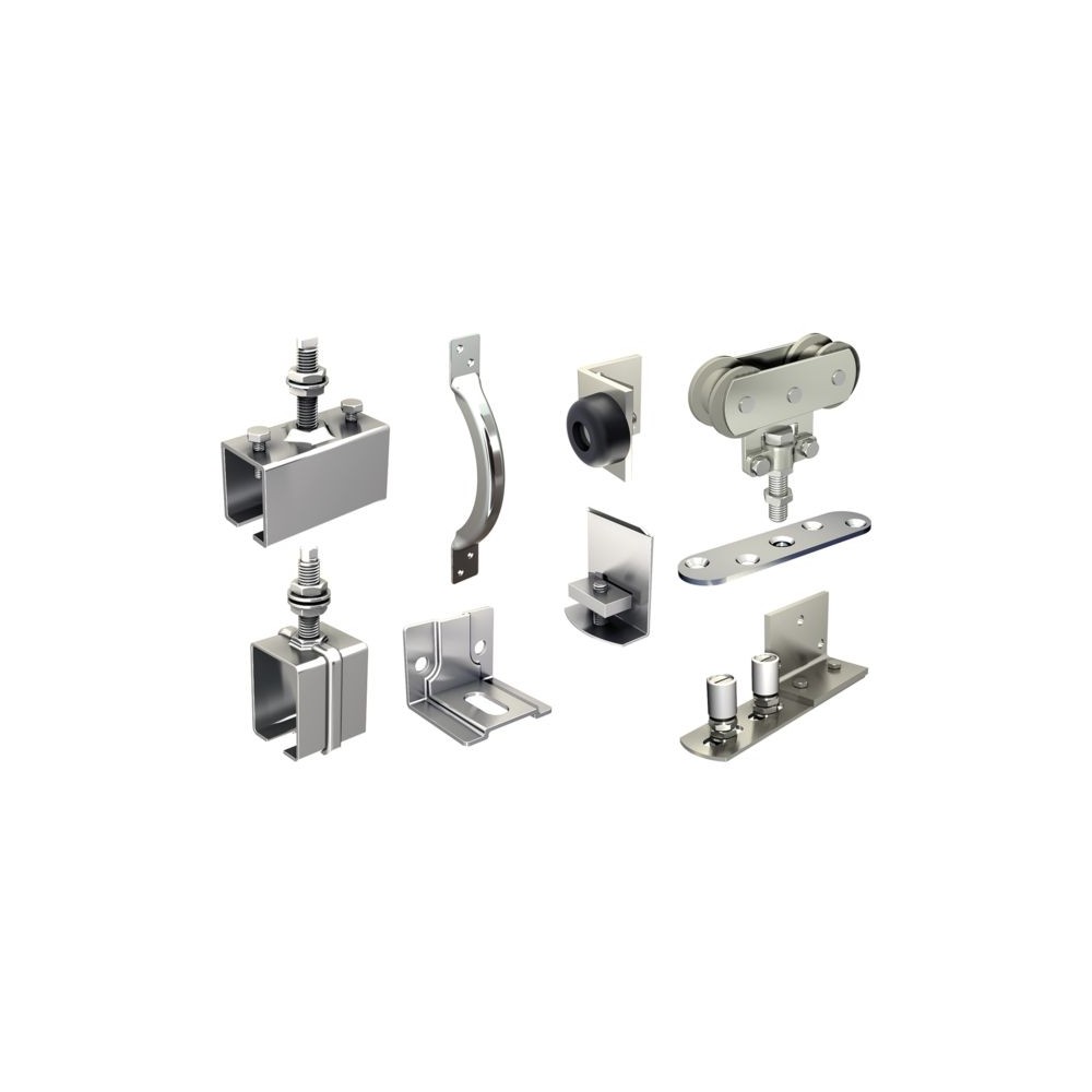 Pour porte de 80 kg. Montage du guide bas 2 olives, sans profil U. Composée de : - 2 montures 0235A - 2 platines 0036 - 6 supports enveloppants 3531 - 1 manchon support 3531 MC - 7 pattes équerre 3533 - 2 enjoliveurs 3540 - 2 guides du bas 1102 - 2 butées 1086 - 1 poignée 1298Réf. mantion : 3530GVP-3