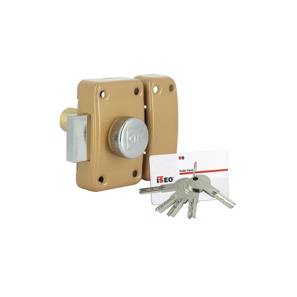 Verrou au coffre et entraxes de fixation indentiques au verrou City 25. Monté avec un cylindre de sécurité R6. Livré avec 5 clés réversibles et carte de réapprovisionnement.Long. cylindre : 45 mm