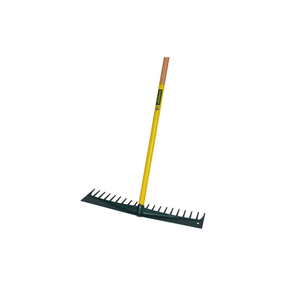 2 en 1, un côté râteau et un côté raclette. Manche en bois. 20 dents. Longueur du manche : 180 cm Largeur de la tête : 625 mm Hauteur des dents : 85 mm Poids : 285 g