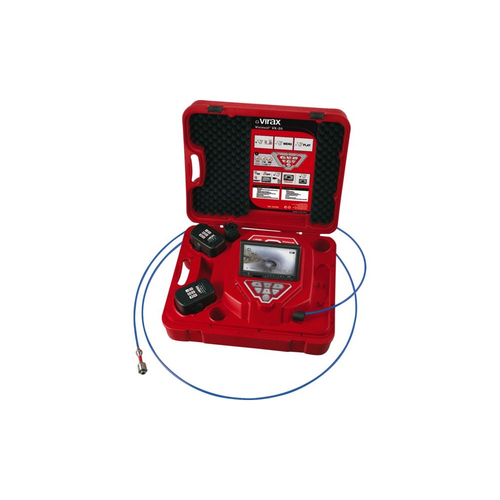 Caméra numérique couleur pour inspection des canalisations. Tête Ø 26 mm étanche. Pour tubes Ø intérieur 40 à 125 mm. Passage des coudes à 90° en Ø intérieur 50 mm. Flexible 30 m avec compteur métrique à l'écran. Écran couleur TFT 18 cm. Fonctionne sur alimentation secteur ou sur batterie. Enregistrement de photos et vidéos. Poids : 8,450 kg Livré avec 2 batteries 12 V 2.6 Ah + bloc d'alimentation secteur + tapis antidDétails