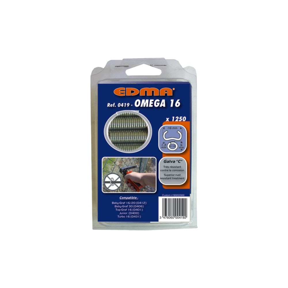 AGRAFE OMEGA 16 - GALVA PLASTIFIE VERT - X 1250 PCS