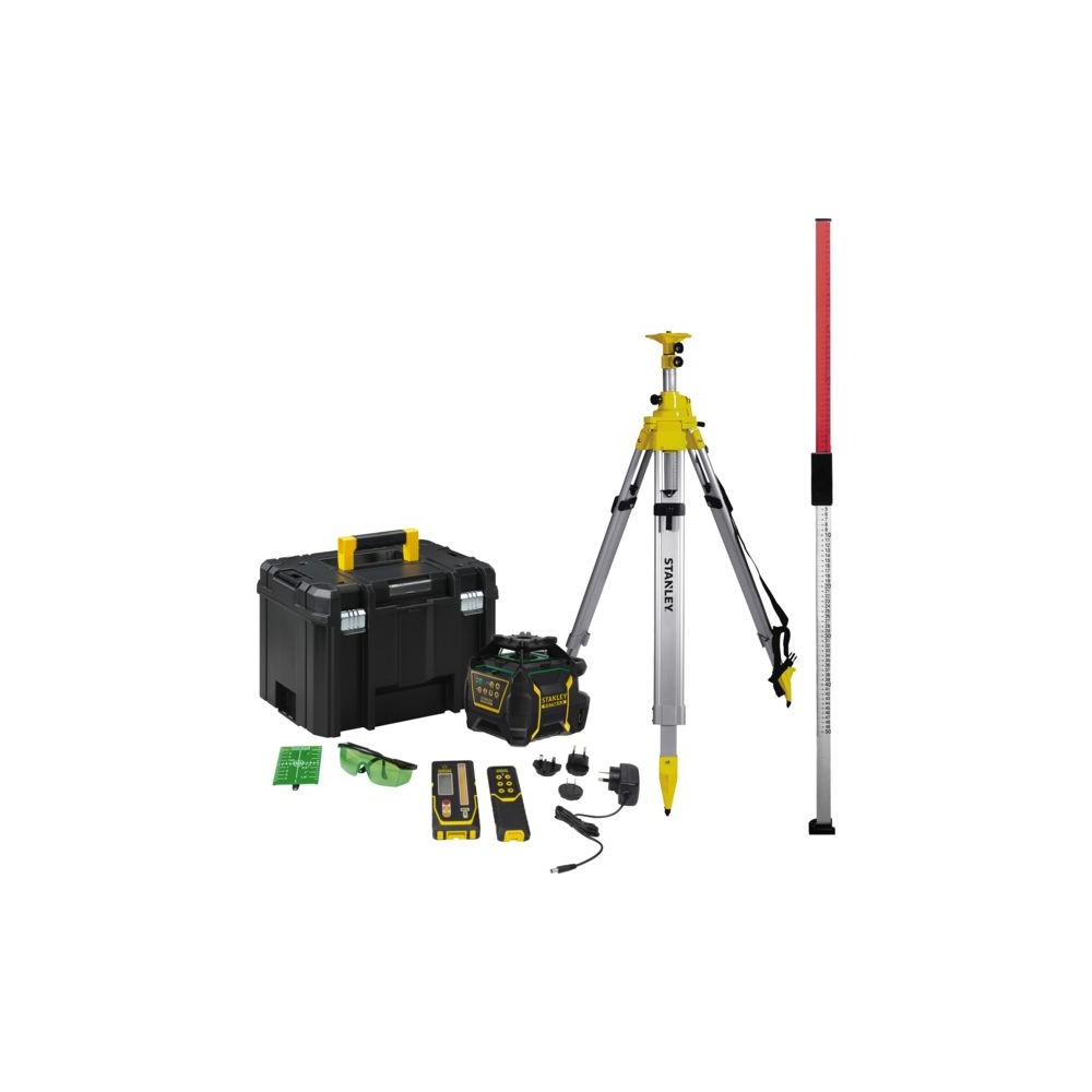 Pack complet, composé de 1 laser rotatif RL600L, lunettes, cible, cellule, trépied aluminium à colonne TPE1. (Plage d’utilisation de 102 à 265 cm) Caractéristique du laser RL750LG : Faisceau laser vert. Plage utilisation : 60 m (600m avec cellule) Indice de protection : IP66 Précis et performant : Précision horizontale : +/-1,5 mm à 30 m Précision verticale : +/-3 mm à 30 m Précision aplomb : +/-4,4 mm à 30 m Double pente : +/- 10 % Vitesse de rotation : 150-300-1000 tr/mn Secteur de balayage : 10°-45°-90° Fonctionne sur batterie rechargeables Li-ion. Laser livré en coffret TSAK.