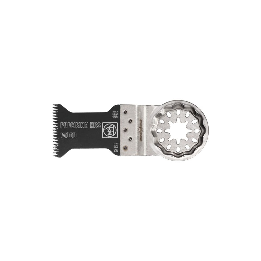 Emmanchement Starlock®. Denture japonaise double pour tous les matériaux dérivés du bois, les plaques de plâtre et les plastiques souples. Forme étroite, taillée pour une vitesse de coupe optimale et une bonne évacuation des copeaux. Conditionnement : 1Larg. : 35 mm | Long. : 50 mm