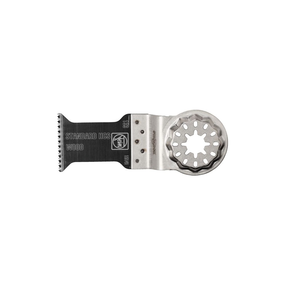 Denture alternée pour tous les matériaux dérivés du bois, les plaques de plâtre et le plastique, haute qualité de coupe et bonne vitesse de coupe. Largeur moyenne, forme taillée pour une vitesse de coupe optimale et une bonne évacuation des copeaux. Largeur : 35 mm Longueur : 50 mm Conditionnement : 1