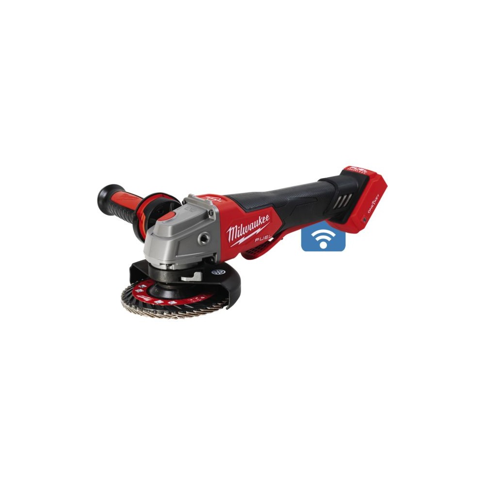 Fonctionne sur batterie 18 V. Fonction anti-redémarrage. Démarrage progressif. ONE-KEY : suivi et sécurité par le biais d'une plateforme de gestion d'inventaire Technologie Rapidstop : frein de disque en 2' Vitesse : 8500 tr/mn Poids : 2,700 kg Livrée en coffret HD Box avec carter de protection, bride, écrou de bride, poignée anti-vibration, sans chargeur ni batterie.