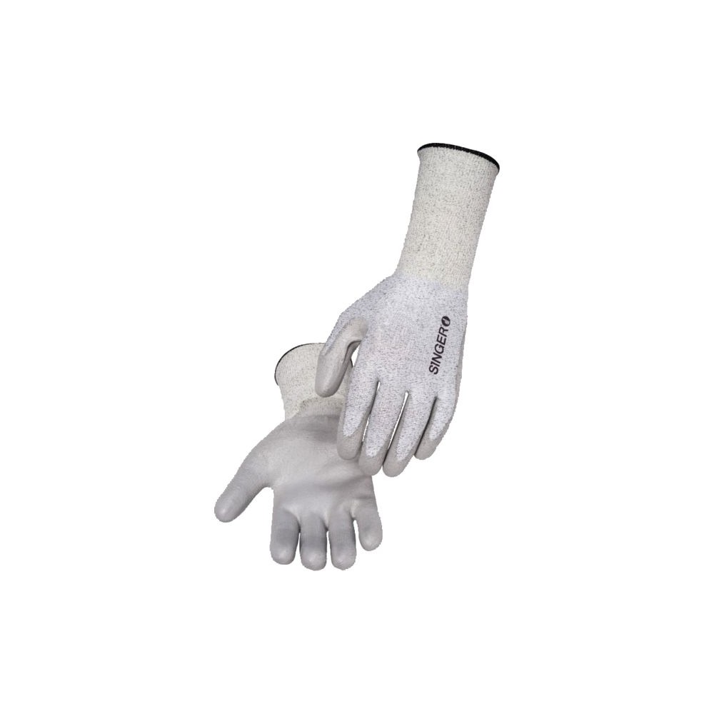 "Enduction polyuréthane souple sur la paume. Support tricoté en fibres haute ténacité HDPE (polyéthylène haute densité PEHD), sans couture, jauge 13. Dos aéré, poignet élastique long avec renfort. Renfort entre le pouce et l'index. Risque coupure D Manutention légère / Milieu sec Utilisations : manutention de tôles coupantes, fabrication de tôles, assemblage automobile, maintenance industrielle, prise de câbles, d'objets coupants, manipulations de matériaux bruts, abrasifs, de carrelages, de céramiques Taille : 8 Détails