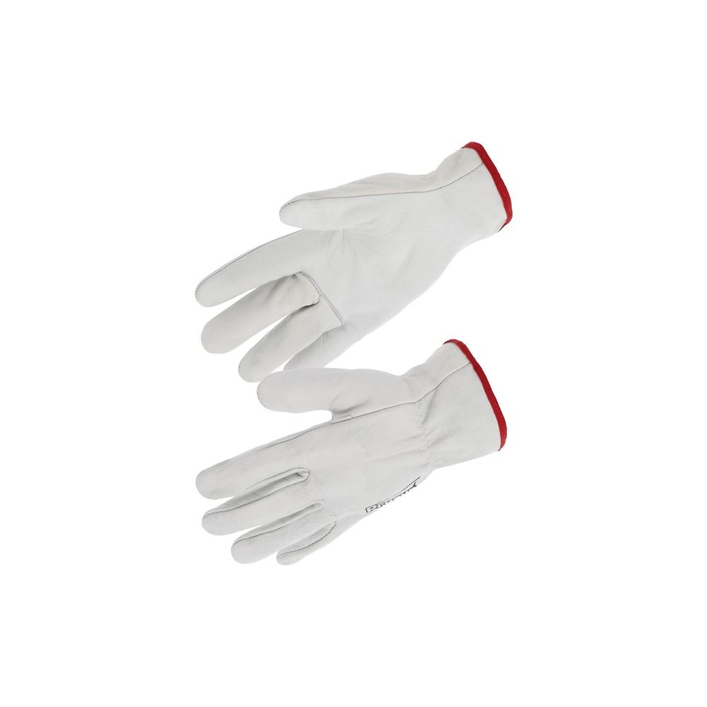Tout fleur de bovin. Serrage élastique au dos, liseré rouge au poignet. Manutention légère / Milieu sec Applications métiers : atelier mécanique, jardinage, industrie, transport, manutention Taille : 8 à 14 Norme : CE Cat II - EN 388 (2121X) - EN 407 (X1XXXX)Type : gant