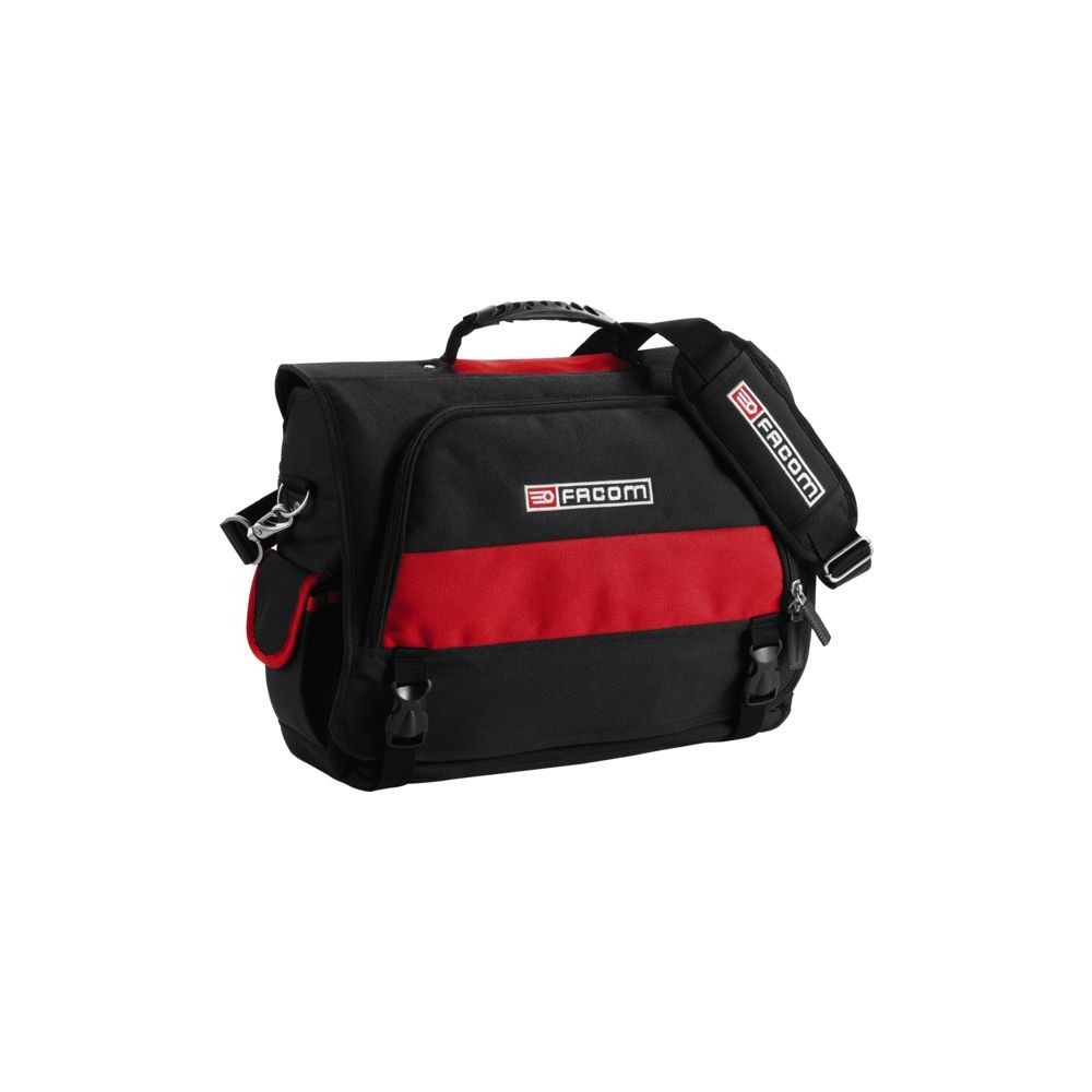 Trousse à outils polyvalente, compacte et légère. Rangement intérieur 14 poches, 2 sangles pour pinces, clés et tournevis, 1 crochet pour le mètre, 1 poche mousse pour ordinateur portable (15? maxi), tablette ou documents de format A4. Rangement extérieur 2 poches latérales (1 fermée et 1 poche filet ouverte). Dimensions : 460 x 150 x 350 mm Charge maxi : 7 kg Livré sans outils.