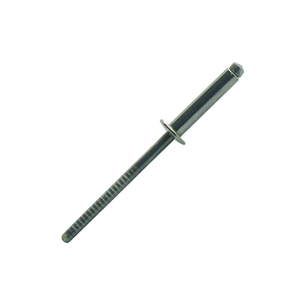 Rivet aveugle standard à tête plate. Corps et tige inox A2. Ø perçage : 4,1 pour rivet 4 mm - 4,9 pour 4,8 mmØ x L : 4,8 x 12 mm : ép. à sertir : 6 - 8 mm : Boîte de : 250