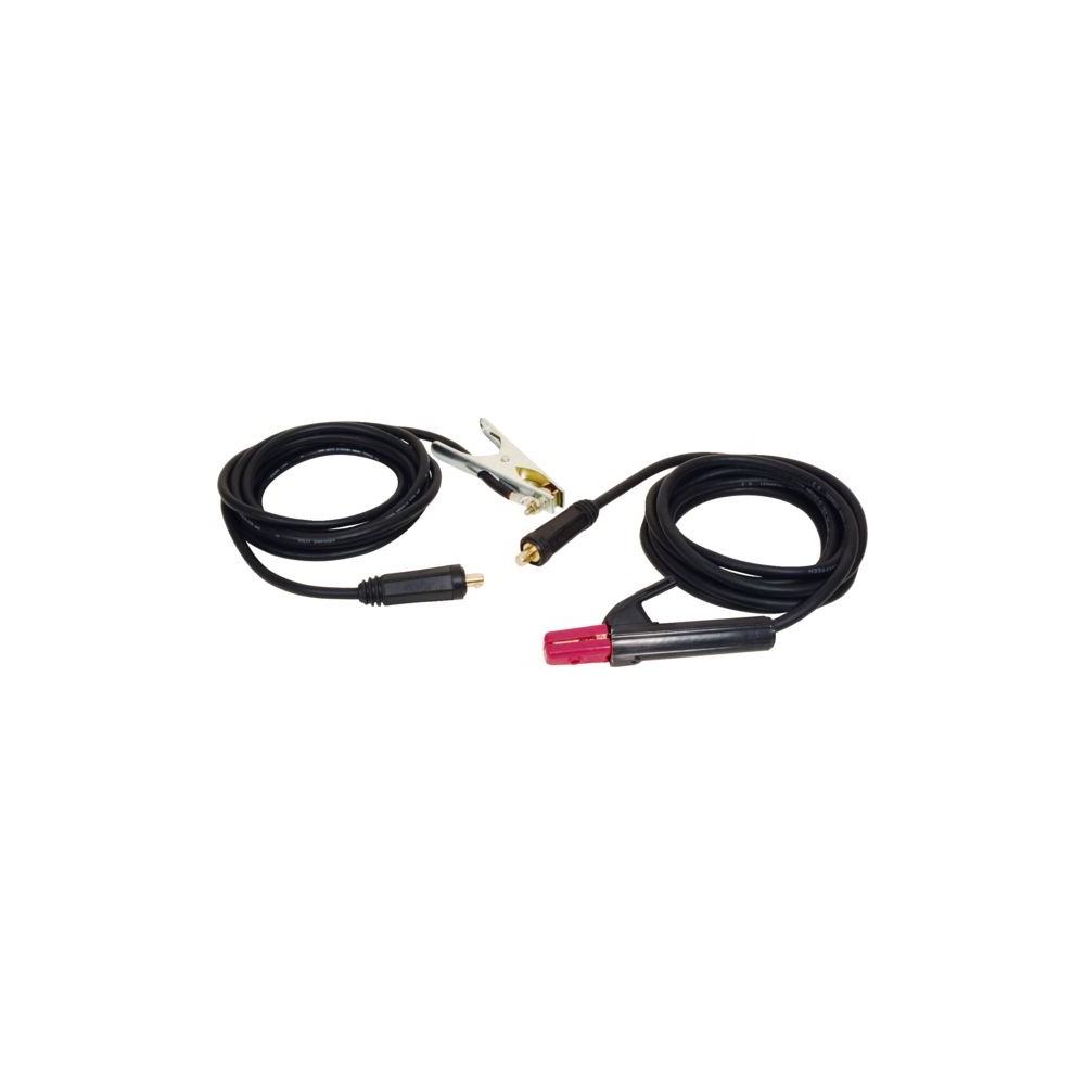 Composé de : - Pince de masse - Porte-électrode Capacité : 200 A - 300 A Section : 25 à 50 mm² Longueur : 3 à 5 mSection:25 mm²|Long.:3 m|Capacité:200 A